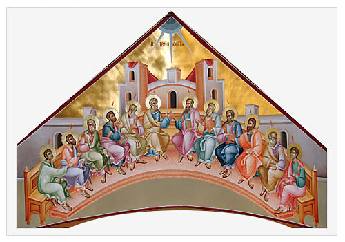 Сошествие Святого Духа на апостолов. Фреска в монастыре Преображения Господня на горе Фавор.